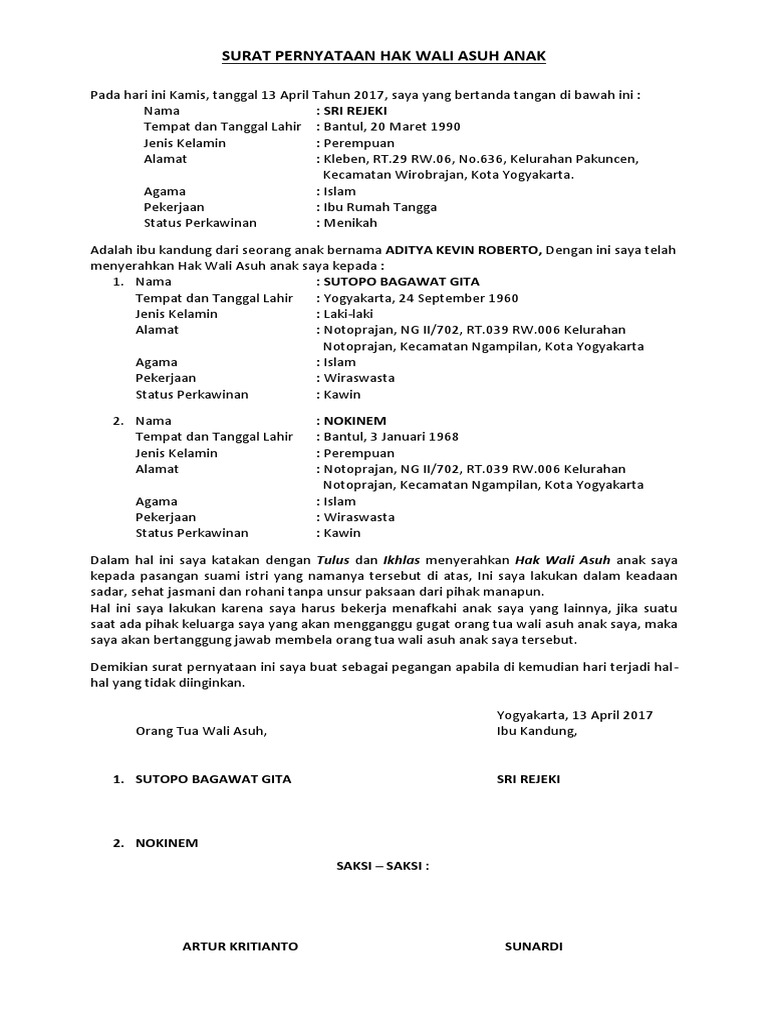 Mari simak Surat Pernyataan Penyerahan Hak Asuh Anak - [PDF Document] Terkini